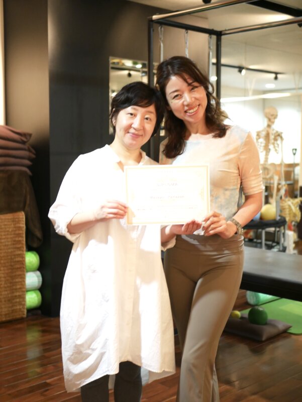 この度3ヶ月間のREBORN STYLE pilatesマットIベーシックモーションコース、認定試験合格をもって全課程修了することができました。